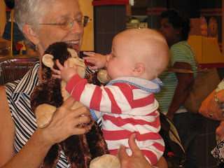 Grant checking out the monkey Madi made him. Guess what she named it......Grant!!